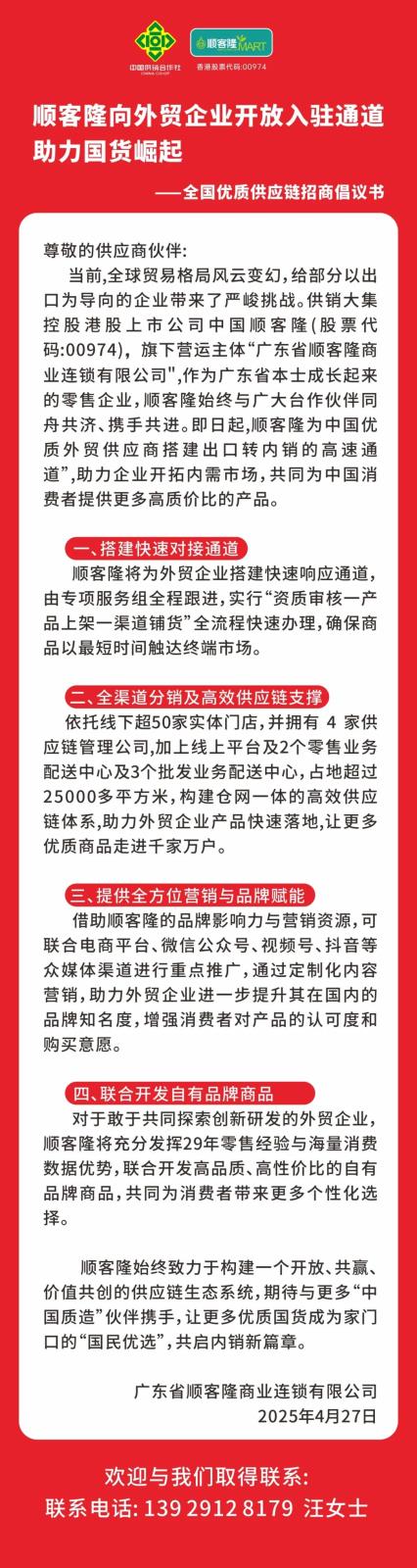 • 順客隆向外貿(mào)企業(yè)開放入駐通道,助力國(guó)貨崛起! 2025-04-28